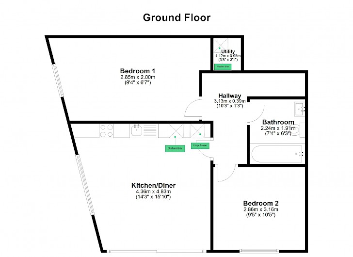 In the communal areas, corridor and the lounge diner the floors have solid wood flooring. The Kitchen Area and Bathroom have dark grey tiled floor for clenliness as well are durability.